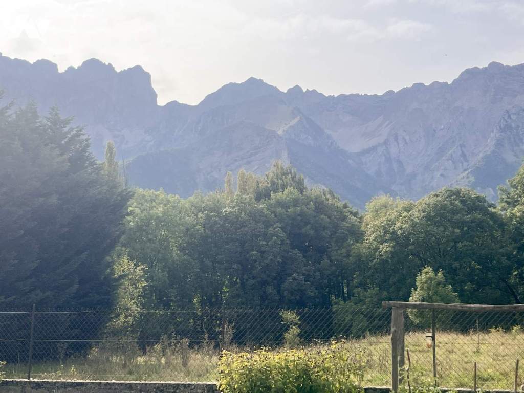 Le jardin de 520 m² offre un bel espace extérieur avec une jolie vue sur la montagne. Situé en zone constructible il peut permettre d'agrandir la maison ou de construire (sous réserve CU positif) .
